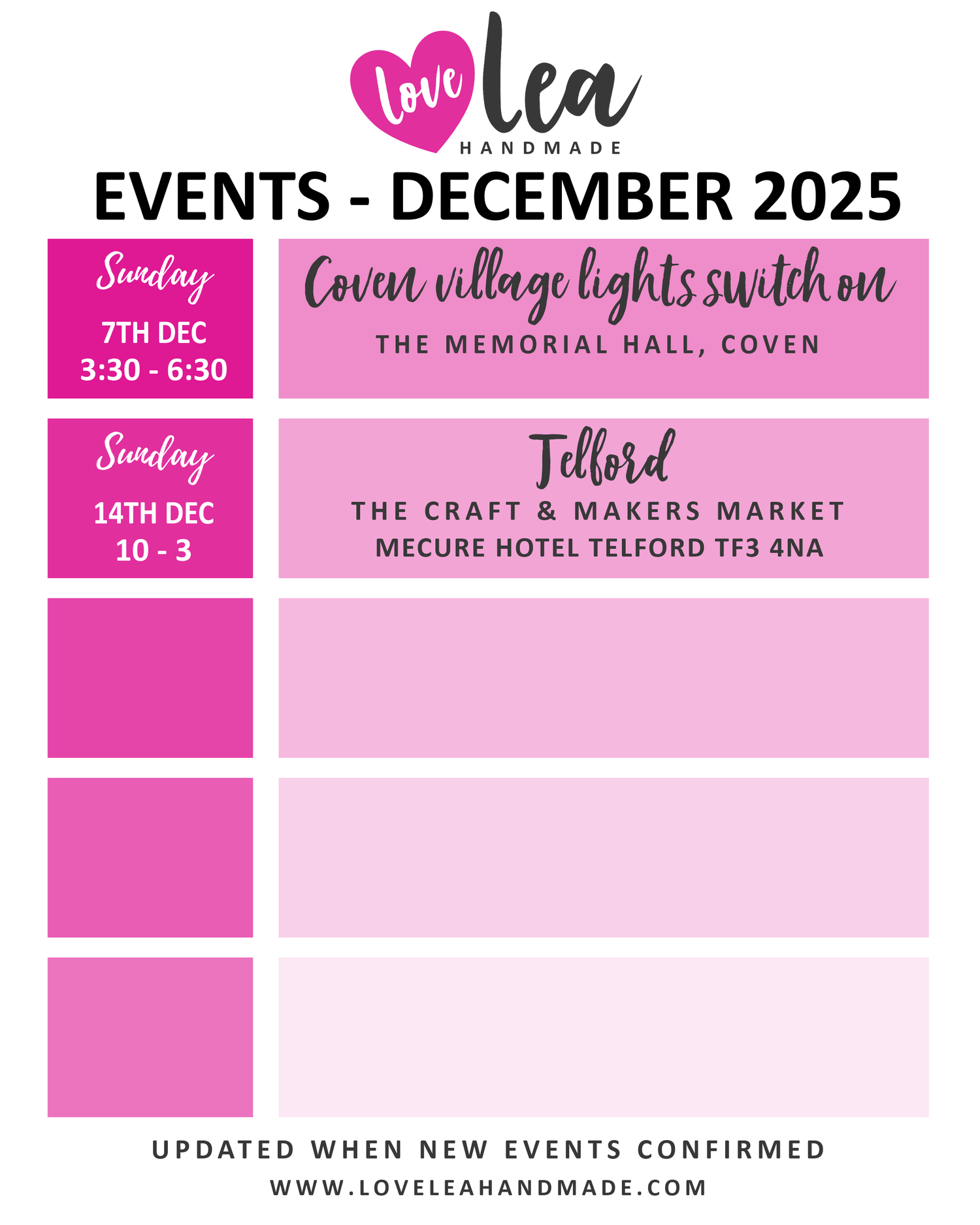 We are attending some new events this year and we are looking forward to meeting new people and spreading some handmade loveliness a little further afield.